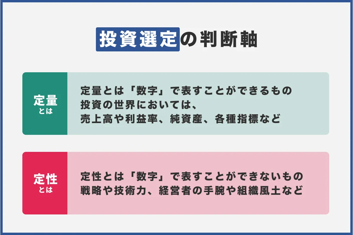 ひふみプラスは「定量」「定性」の両面から評価して投資する銘柄を選定します。